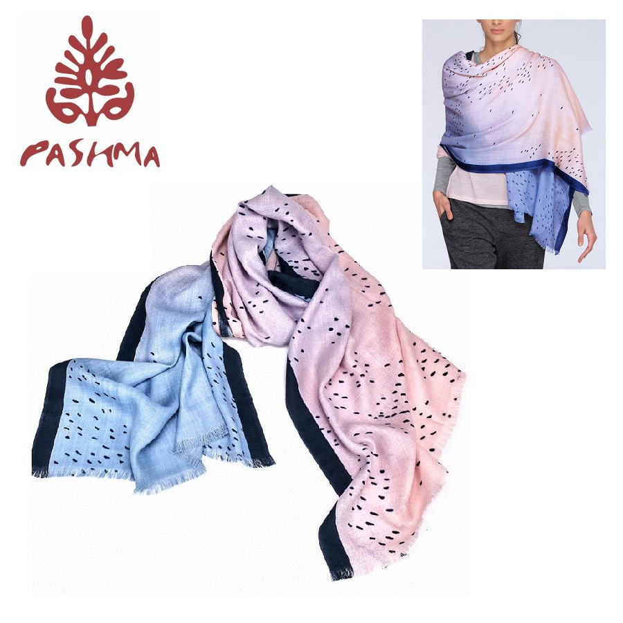 PASHMA 永續再生喀什米爾羊毛藍粉色披肩