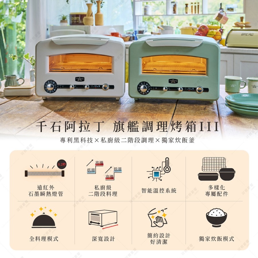 【最新款-旗天大瞬】日本千石阿拉丁「專利0.2秒瞬熱」320度極炙烤箱三代旗艦款