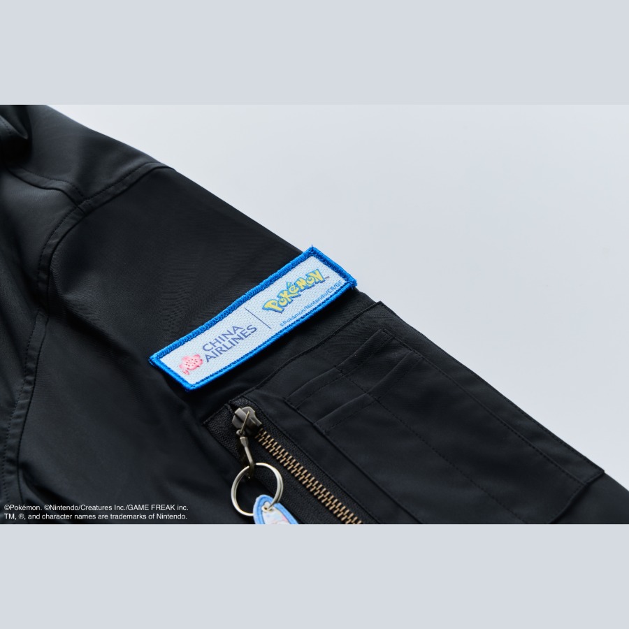 將充滿冒險感的寶可夢元素帶進你的日常生活,背面皮卡丘圖樣活潑鮮明,是旅途中的好旅伴;手臂精靈球與可替換臂章讓您的旅程更具個性;皮卡丘袖標別緻;彩繪機飄帶體現航空專屬元素。設計精緻、細節講究,是兼具實用性與紀念價值的收藏逸品。