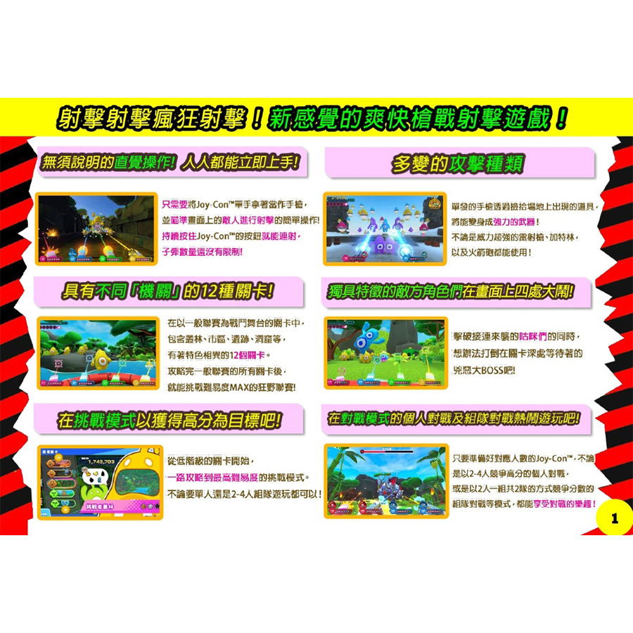「砰!砰!奪寶大冒險」是一款完全原創的新作槍枝射擊遊戲,在保留傳統槍枝射擊遊戲的緊張感和爽快感的同時,也採用了簡單的規則和操作方式,並以明亮活潑的角色和易於理解的世界觀為特色,是一款適合從兒童到成人等各個年齡層安心遊玩的遊戲。