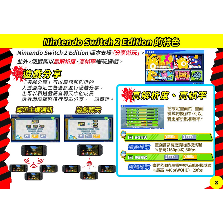 Nintendo Switch 2 版現已支援「共享遊玩」功能。您可以與身邊的朋友進行本地遊玩,也可以透過遊戲內聊天與遠方的朋友進行線上遊戲。此外,遊戲還擁有更高的解析度和幀率,帶來更流暢的遊戲體驗。