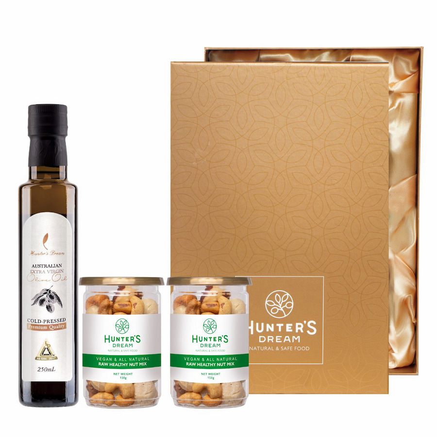 獵人谷之夢 初榨橄欖油堅果禮盒(特級初榨橄欖油250ml+蔓越莓綜合堅果 150g罐裝x2)
