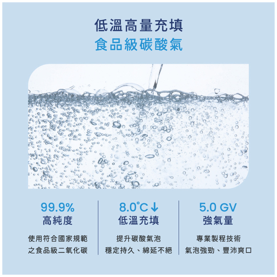 強5GV 食品級碳酸氣、99.9%高純度國家規範二氧化碳、8.0℃以下低溫充填,提升碳酸氣泡穩定持久、綿延不絕。